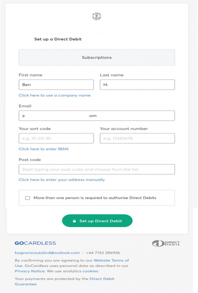 This guide is designed to help you set up GoCardless for payments for both your child’s subscription fees, camp, events and other costs. We introduced GoCardless as a payment method as it has proved to save endless hours of admin for leaders and the group treasurer.